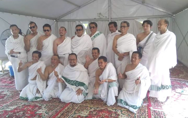 | Bapak-Bapak Jemaah Haji Mandiri 2018 Kloter 21 JKS, Karawang, Jawa Barat, di Arafah Pra Wukuf. |